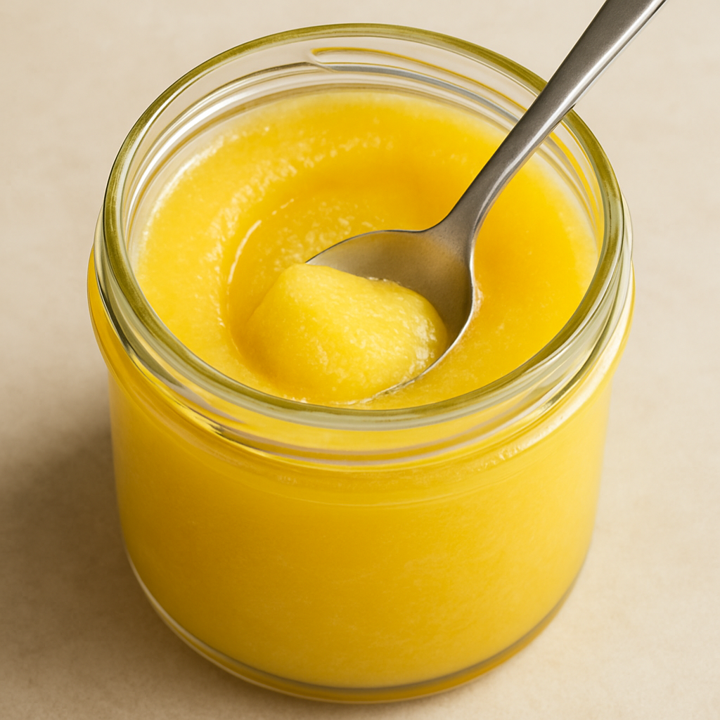 Wenn du mehr über die gesundheitlichen Vorteile von Ghee erfahren möchtest – ich habe dazu einen separaten Beitrag geschrieben, den du hier findest. Ich verwende Ghee schon seit längerer Zeit regelmäßig in meiner Küche und mache es inzwischen fast nur noch selbst. Das ist nicht nur günstiger als die kleinen Gläser aus dem Supermarkt, sondern du bekommst auch deutlich mehr heraus – und weißt genau, was drin ist. Falls du Ghee auch mal selbst herstellen möchtest: Hier geht es zum Rezept!