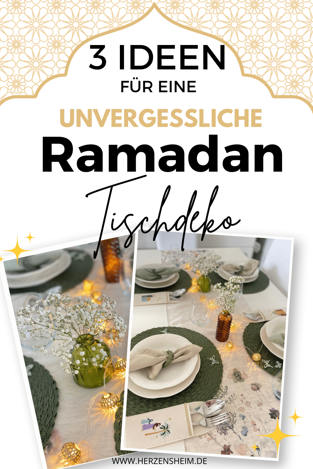 Ich erinnere mich gerne an die vergangenen Ramadan-Monate zurück, die so voll von unvergesslichen Momenten waren. Dafür bin ich Allah von ganzem Herzen dankbar und blicke stets mit Freude und Nostalgie auf diese Zeiten zurück. Eine besondere Erinnerung sind die vielen Iftar-Abende, die wir mit Familie und Freunden genossen haben. Nachdem ich geheiratet und Kinder bekommen habe, hat ein neues Kapitel in meinem Leben begonnen, für das ich sehr dankbar und glücklich bin. Leider macht es der Alltagstrubel als Mama jedoch schwierig, Freunde wie früher zum Iftar einzuladen. Diese Momente vermisse ich sehr. Umso mehr lege ich im Ramadan besonderen Wert darauf, durch kleine Akzente, wie eine liebevoll gestaltete Tischdekoration, die Stimmung zu heben und eine warme, einladende Atmosphäre zu schaffen. Ich möchte euch drei einfache und schöne Ideen vorstellen, mit denen ihr eure Tischdekoration warm, gemütlich und einladend gestalten könnt.