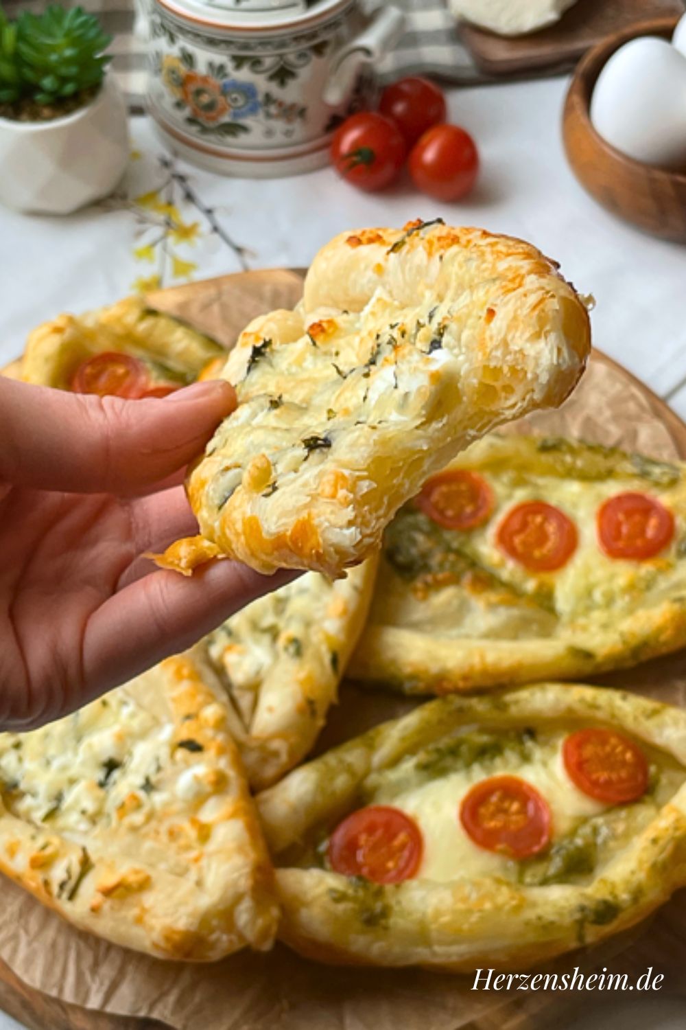 Vegetarische Pide aus Blätterteig – mit Käsefüllung & Pesto
