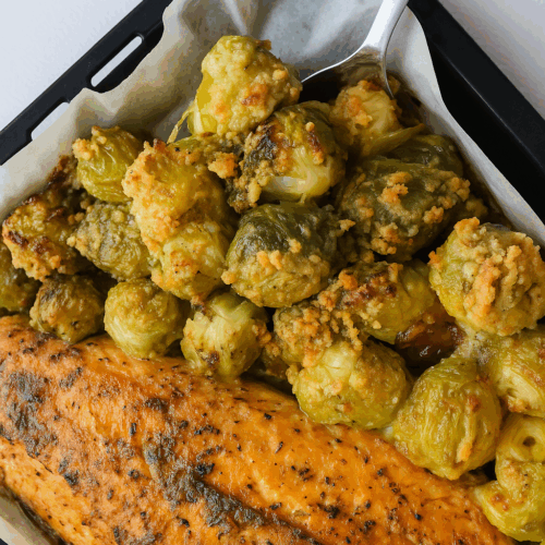 Rosenkohl aus dem Ofen – mit Lachs & Kräuterkartoffeln